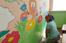 Сотрудники детского сада готовят учреждение к новому учебному году.