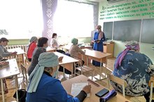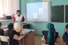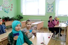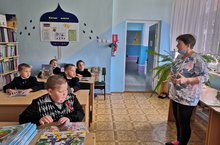 Учитель начальных классов Газизова Г.Х. провела беседу с учащимися начальных классов на тему «Туган ягым-яшел бишек». Здесь говорилось о государственном гербе и флаге Татарской Автономной Советской Социалистической Республики