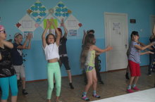 Утренняя зарядка в лагере начинается с физических упражнений от плоскостопия.