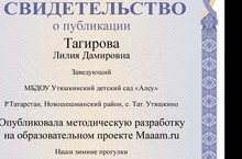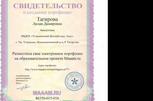 Заведующая детского сада Тагирова Л.Д. получила свидетельство о создании портфолио на образовательном проекте.