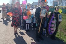 " Үлемсез полк" акциясендә укучылар һәм укытучылар яу кырында башын салган, сугышта катнашкан, тылда фидакарь хезмәт куйган авылдашлары, туганнары фотоларын күтәреп, урам әйләнде. Аннары барысы да һәйкәл янына җыелды.