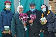 Лицейның Яшь гвардиячеләр отрядында торучылар, барлык сыйныф укучылары үзләренең җитәкчеләре белән ветеран укытучыларны бәйрәм белән котладылар.