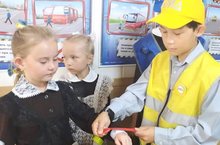 ЮИДовцы рассказали первоклассникам о необходимости ношения светоотражающих элементов и подарили браслеты.