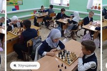 Учащиеся начальных классов занимаются в кружке "Шахматы".