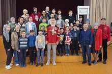 Сегодня состоялась встреча лицеистов и болельшиков хоккейной команды "Авангард" с чемпионом России , обладателем кубка Гагарина , земляком Дамиром Шарипзяновым.