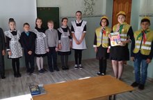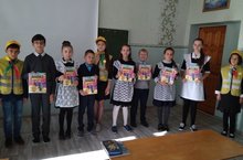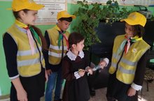 В рамках акции члены отряда ЮИД рассказали первоклассникам об опасностях на дорогах и вручили светоотражающие элементы.