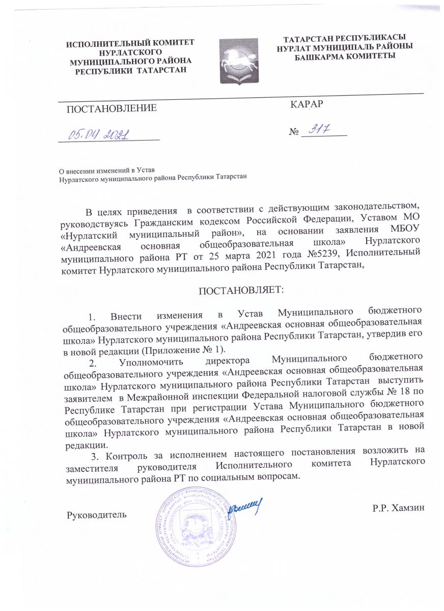 Муниципальное бюджетное общеобразовательное учреждение "Андреевская основная общеобразовательная школа " Нурлатского муниципального района Республики Татарстан (Татарстан Республикасы Нурлат муниципаль районы "Андреевка төп гомуми белем мәктәбе" муниципаль бюджет гомуми белем учреждениесе)