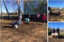 Все дружно вышли на субботник после уроков и занялись уборкой территории школы.