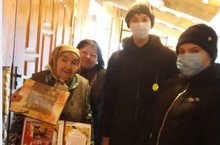 Поздравить со столь знаменательной датой пришли члены волонтёрского отряда "Волшебники". Пожелали ей здоровья, внимания родных и близких. -