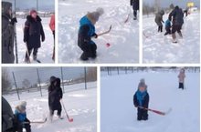 Погодные условия нисколько не смутили жителей села, которые сегодня пришли поиграть в хоккей.