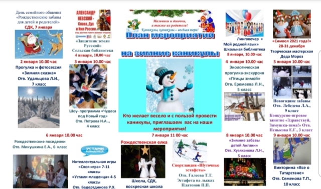 План мероприятий на зимние каникулы 2021 28.12.2020