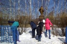 Юнармейский отряд "Сокол" и тимуровский отряд "Волшебники" приняли участие в благоустройстве територрии памятника односельчанам, павшим в ВОВ.