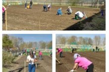 Учащиеся после уроков заняты на пришкольном участке:сеем морковь, свеклу, сажаем лук.