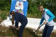 В рамках акции "Осенняя неделя добра" тимуровцы 8 класса занимались уборкой территории памятника павшим односельчанам.