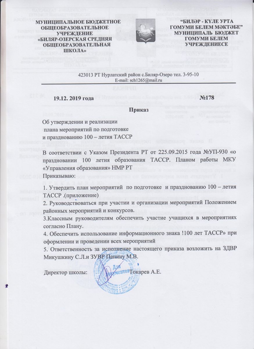 Муниципальное бюджетное общеобразовательное учреждение "Биляр-Озерская средняя общеобразовательная школа Нурлатского муниципального района Республики Татарстан" / «Татарстан Республикасы Нурлат муниципаль районы Биләр-Куле урта гомуми белем мәктәбе» муниципаль бюджет гомуми белем учреждениесе