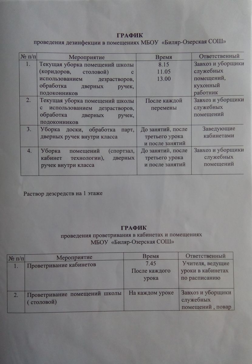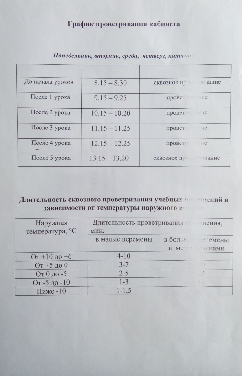 График проведения дезинфекции и проветривания в кабинетах и помещениях