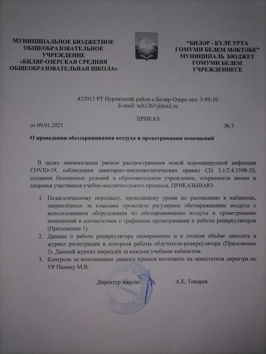 ПРИКАЗ от 09_01_2021 О проведении обеззараживания воздуха и проветривании помещений