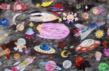Коллективная работа "Космос глазами детей" воспитанников дошкольной группы.