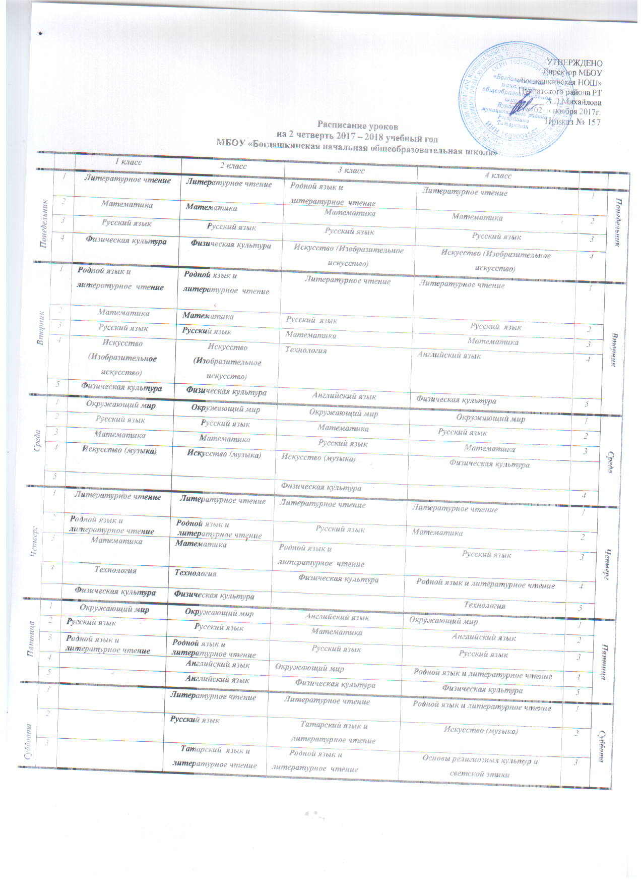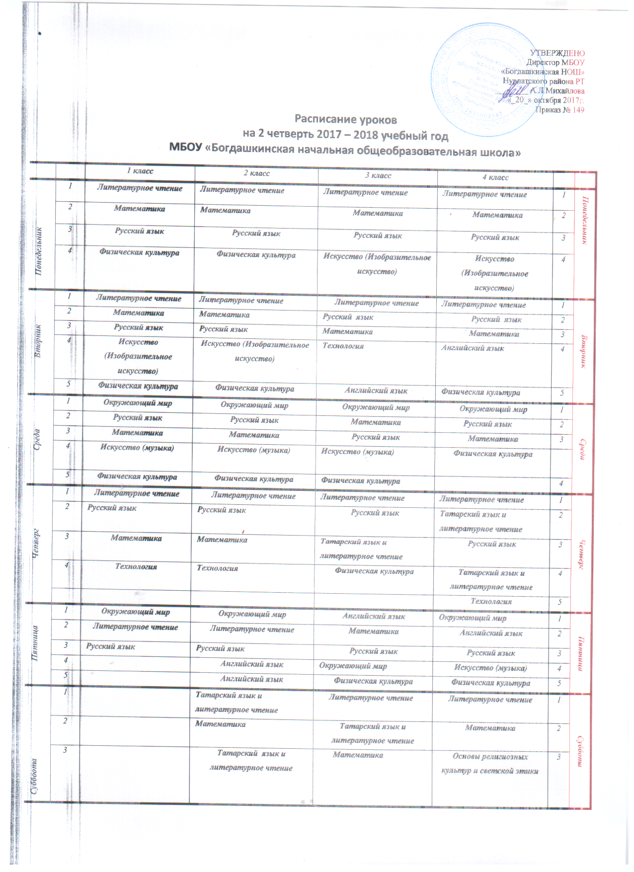 Расписание уроков на 2017-2018 год ( новое)/ Дәресләр расписаниесе бу 2017-2018 елда( яңа)