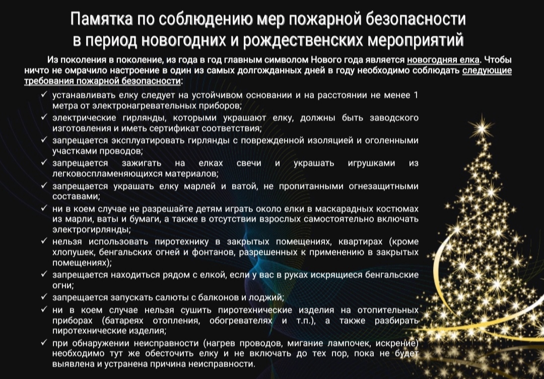 Памятка по соблюдению мер пожарной безопасности в период новогодних и рождественских мероприятий