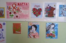 Выставка детских рисунков к 8 марта. В своих рисунках учащиеся выразили свою любовь к мамам.