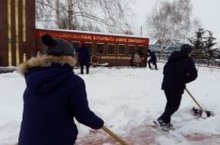 Учащиеся школы очистили от снега территорию около памятника погибшим воинам в годы ВОв.