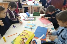 Учащиеся 1 класса готовят подарки к Дню Защитника Отечества.