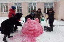 Яңа ел алдыннан мәктәп ишек алдында кардан сыннар ясау матур гадәткә әверелде. Бу эштә укучылар да, укытучылар да теләп катнаша.