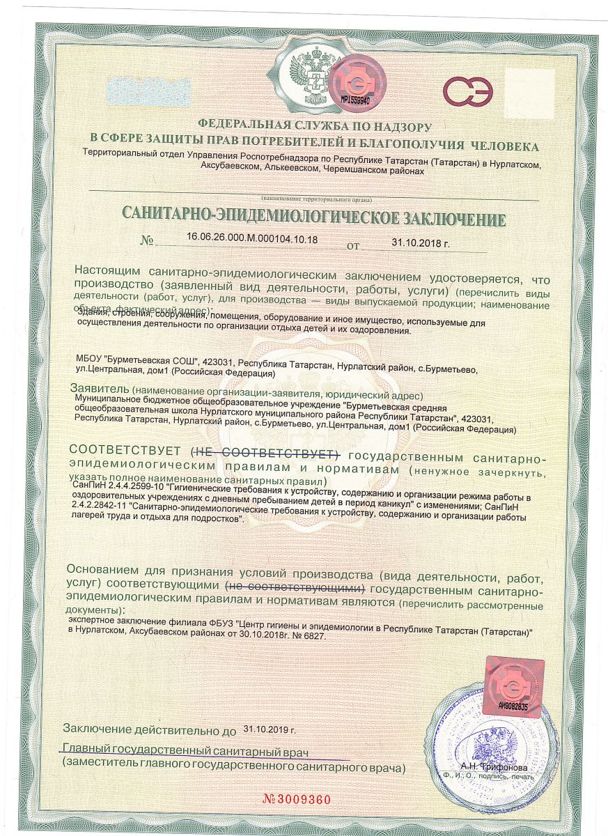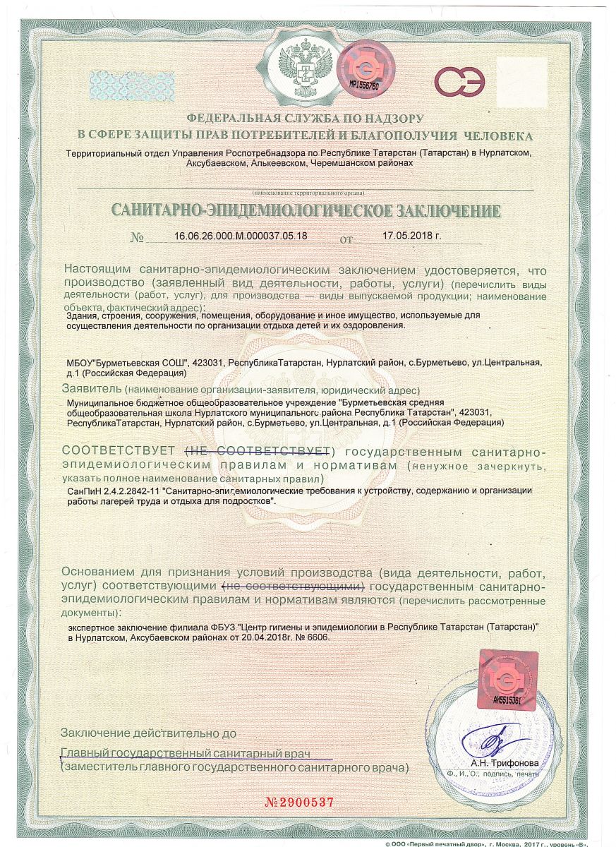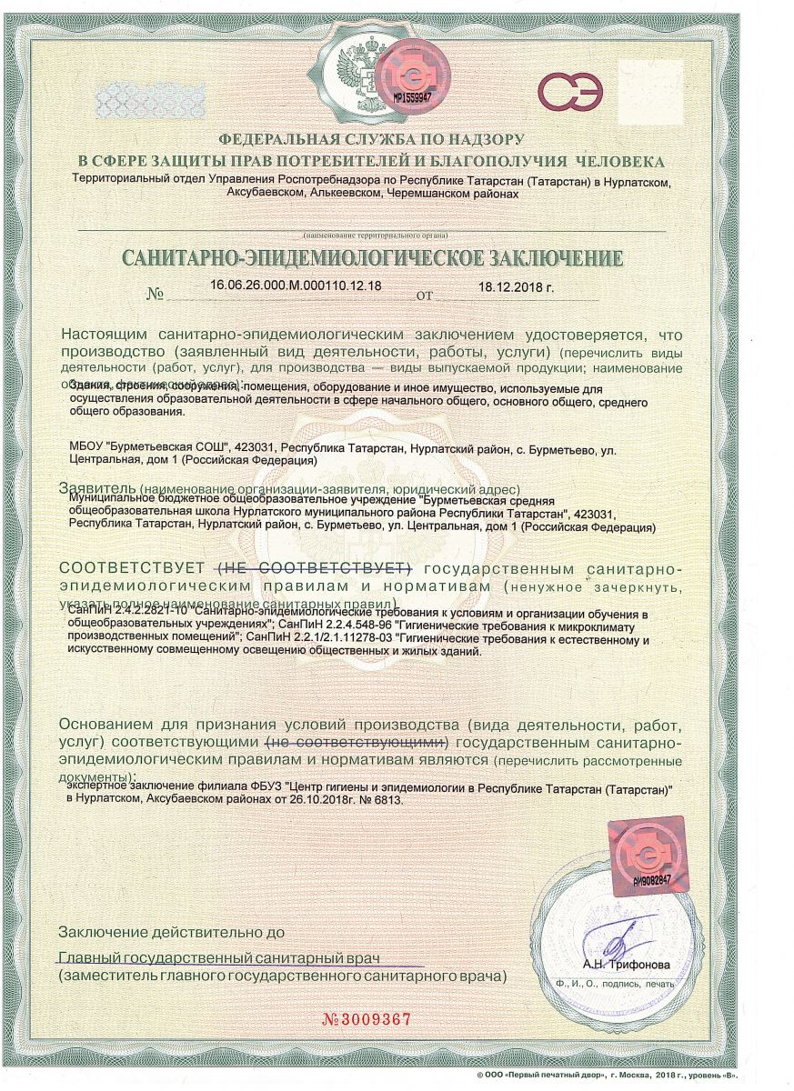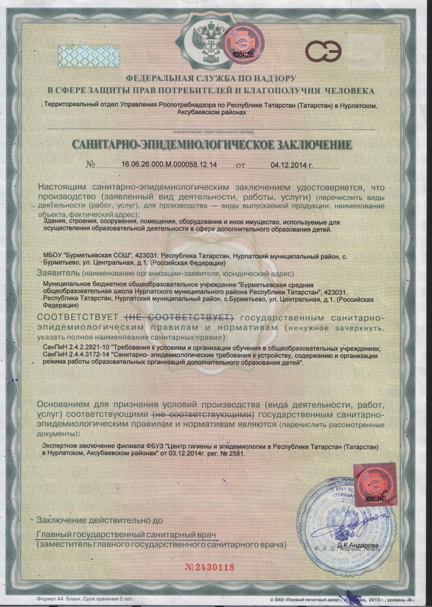 Санитарно- эпидемиологическое заключение / Санитар - эпидемиологик бәяләмә