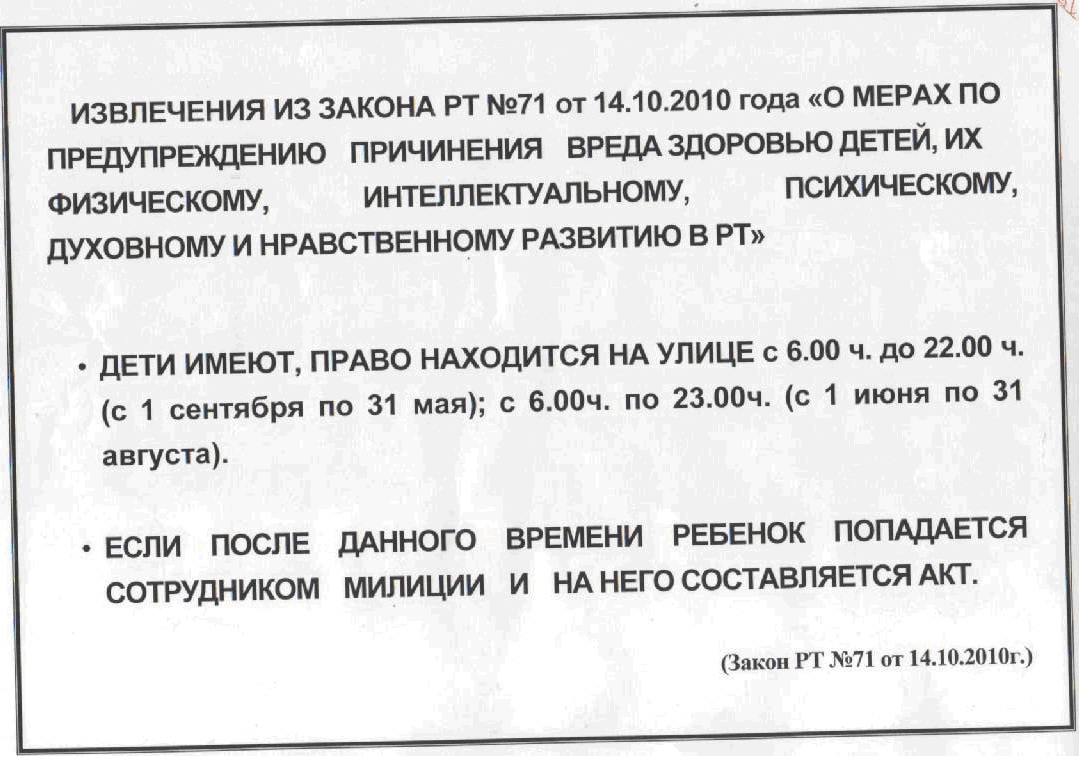 Нахождение детей на улице в ночное время /Балаларның төнге сәгатьләрдә урамда булулары