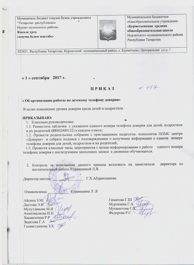 Приказ "Об организации работы по детскому телефону доверия"