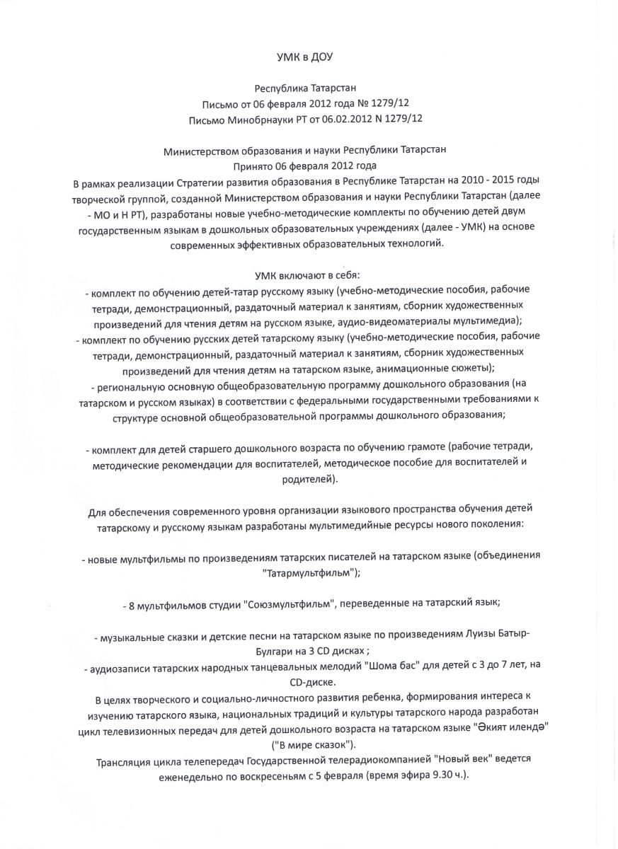 УМК "Говорим на родном языке","Говорим по-татарски"в детском саду/Балалар бакчасында УМК"Татарча сөйләшәбез","Туган телдә сөйләшәбез"