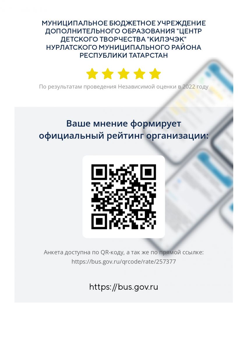 Вы можите оставить мнение о нашей организации. Чтобы оценить условия осуществления образовательной деятельности наведите камеру Вашего телефона и отсканируйте QR - код.