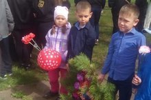 С самого утра наши воспитанники шли в детский сад с цветами. Это уже стало традицией - и дети ждут этого дня - положить цветы к памятнику павшим. Возложению цветов предшествовал утренник, на котором взрослые рассказали о страшном слове - "война". Пелись песни о нашей Армии, мальчики стали в танце русскими богатырями и моряками. А потом взрослые, педагоги и родители, и дети пошли к памятнику возлагать