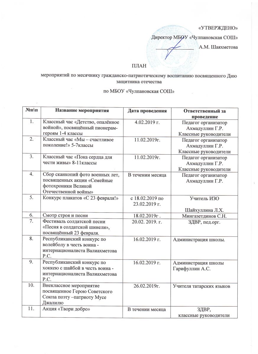 План работы на месячник гражданско-патриотического воспитания. фераль 2019 г