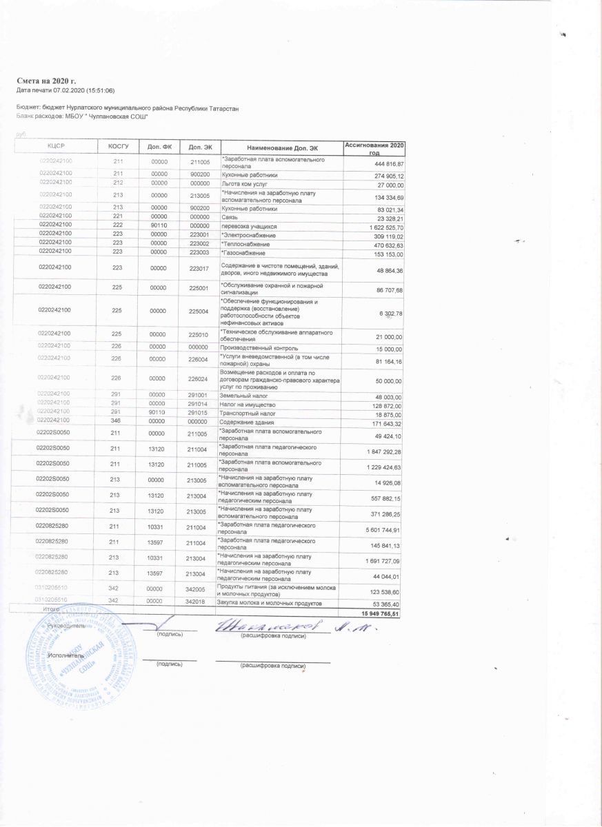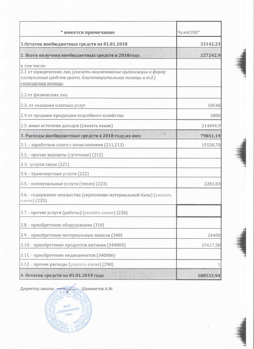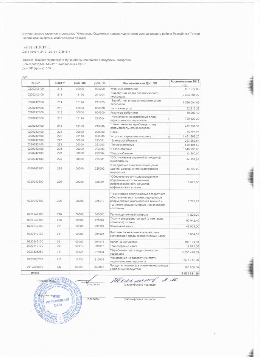 Бюджет МБОУ Чулпановская СОШ на 2019 год