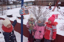 Дети средней группы "Пчелки" угостили птиц хлебом./ "Бал корты"ның уртанчы төркем балалары кошларны ипи белән сыйладылар.