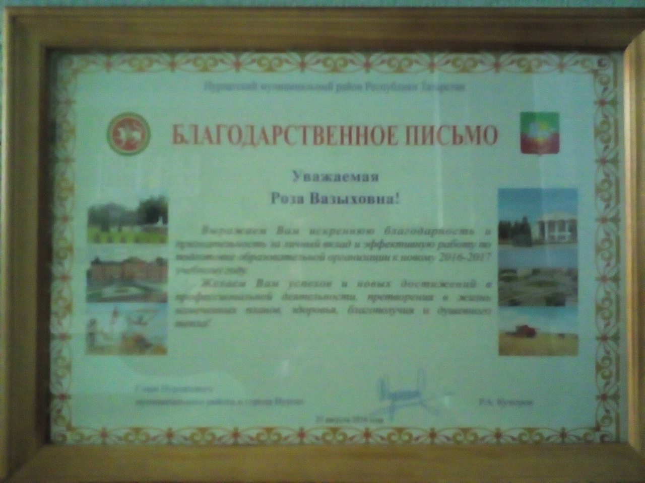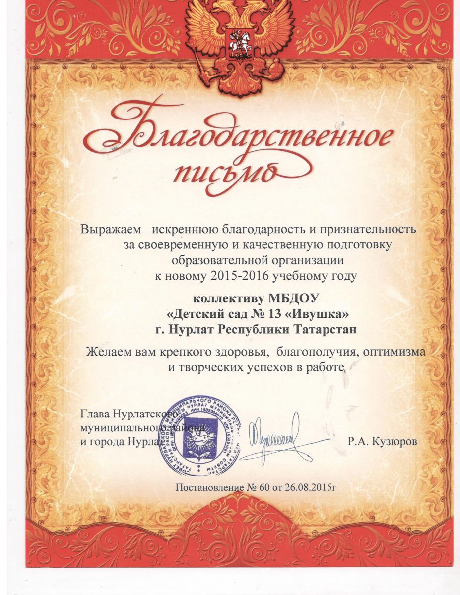 Благодарственное письмо от 26 августа 2015 года