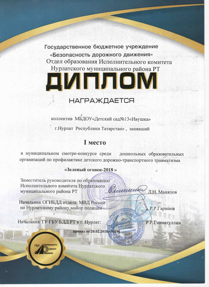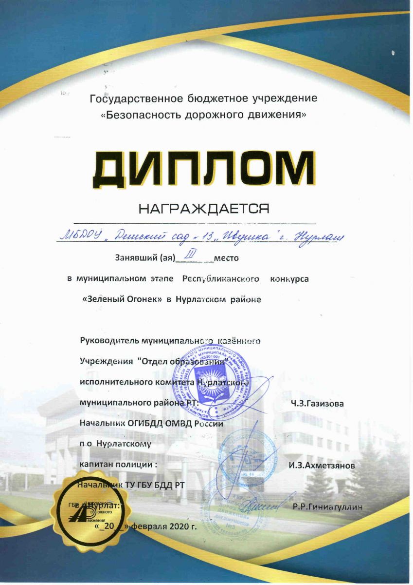 Диплом 3 место "Зеленый огонек"