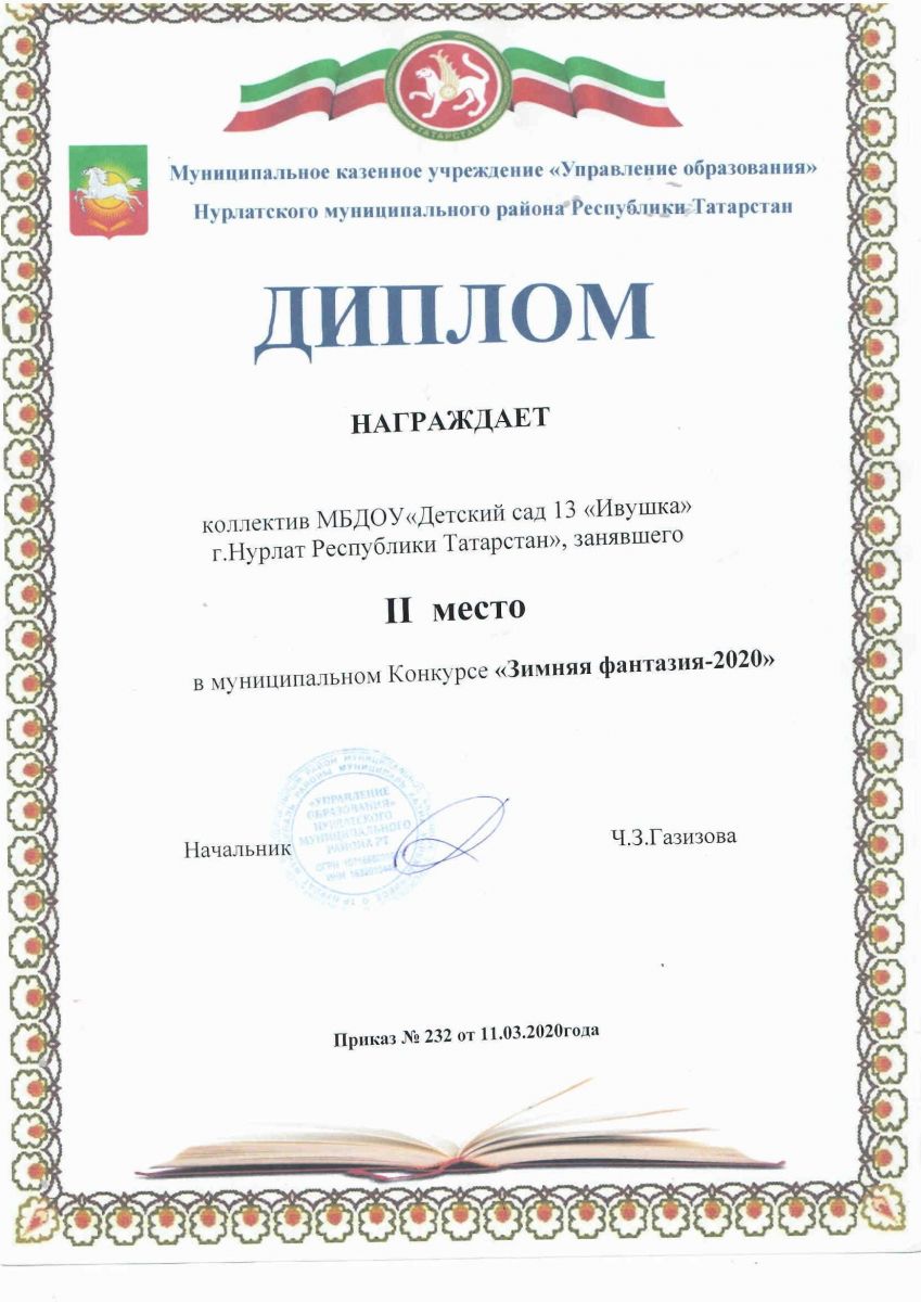 Диплом 2 место в муниципальном конкурсе "Зимняя фантазия - 2020"