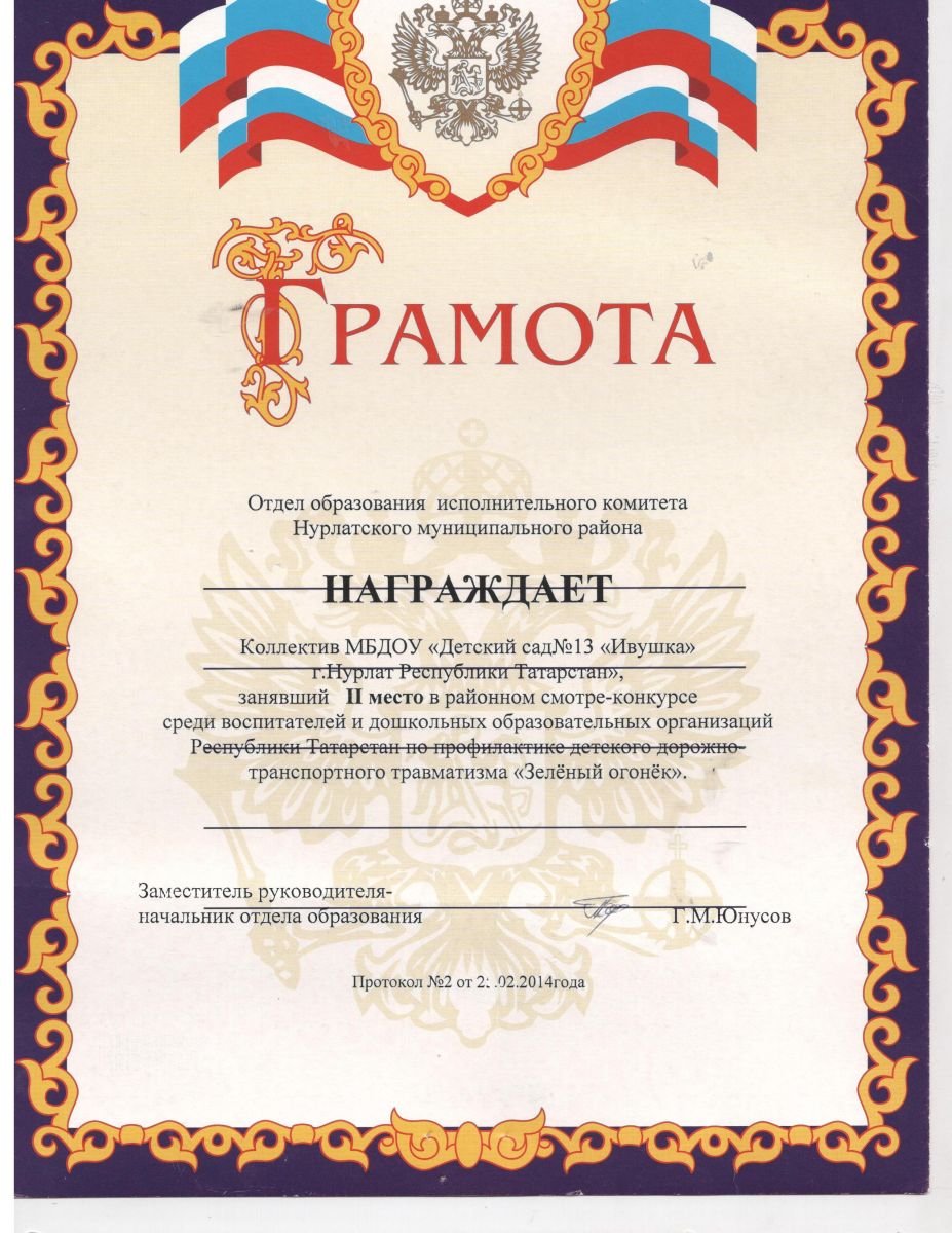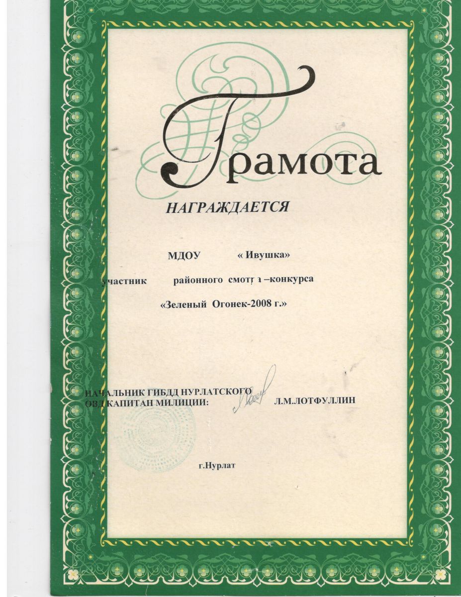 Грамота "Зеленый огонек" 2014 год