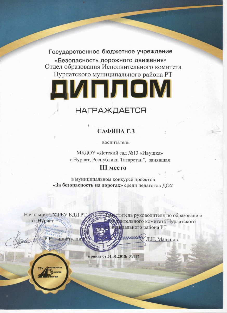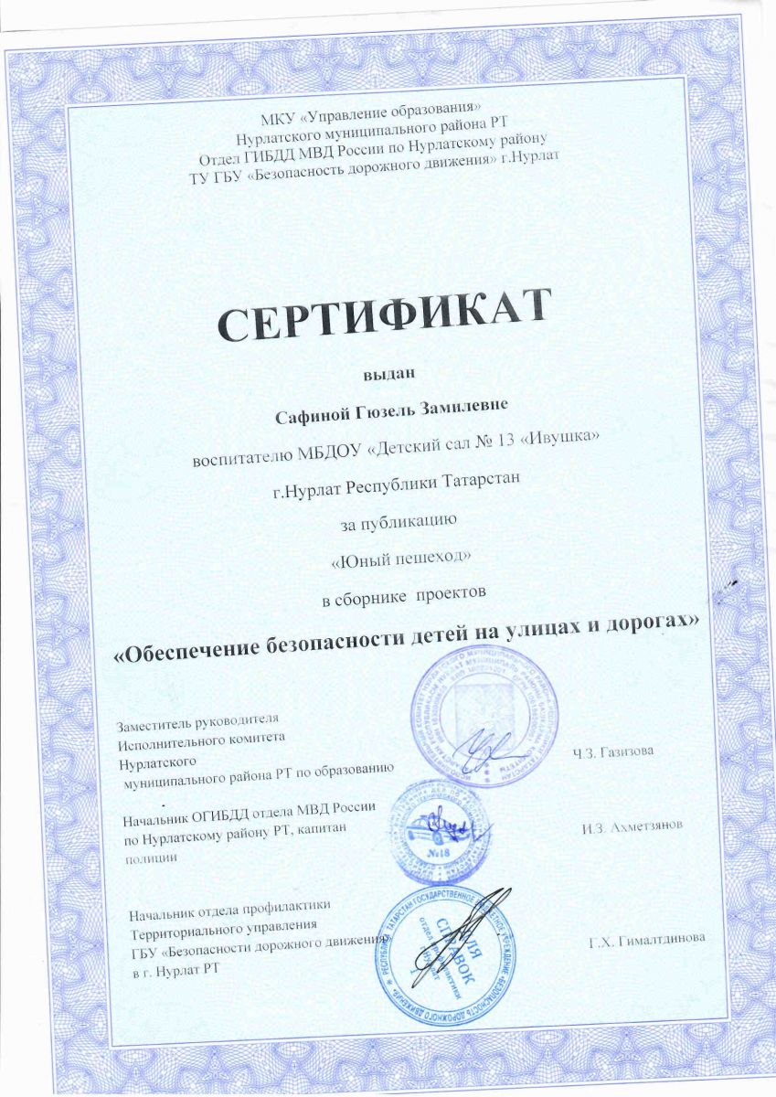 Сертификат о публикации в сборнике материалов по ПДД Сафина Г.З.