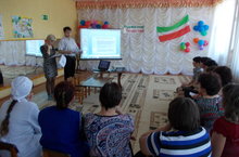 На Районном методическом объядинении инструкторов по физической культуре Хисматуллина Г.Р. показала занятие с детьми средней группы с использованием мультимидийных технологии.
