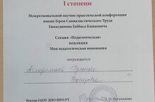 Аглиуллина Г. В., участвовала на Межрегиональной научно-практической конференции имени Героя Социалистического Труда Гиматдинова Габбаса Киямовича, в подсекции "Моя педагогическая инновация" с авторским проектом "Мульт-студия для детей старшего дошкольного возраста". И стала победителем.
