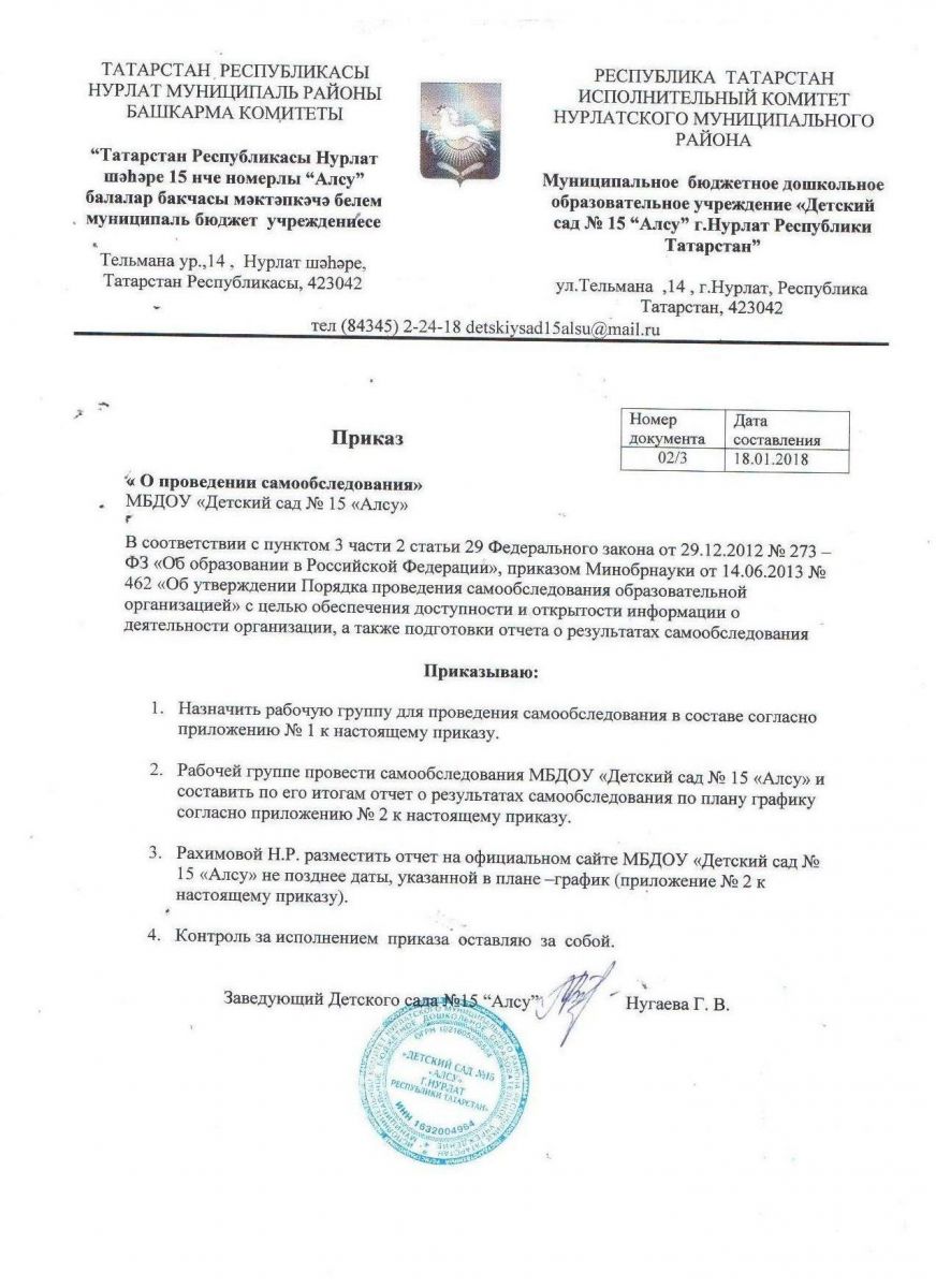 Отчет о результатах самообследования деятельности Детского сада №15 "Алсу" за 2015-2016 учебный год