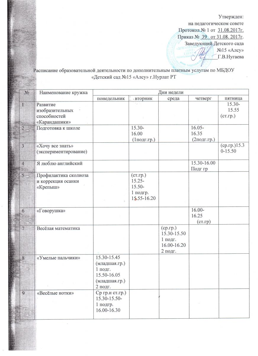 Расписание платных образовательных услуг