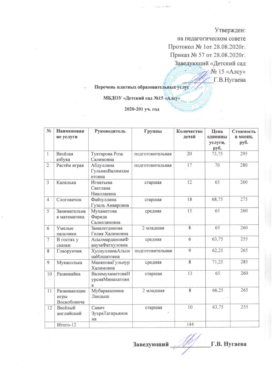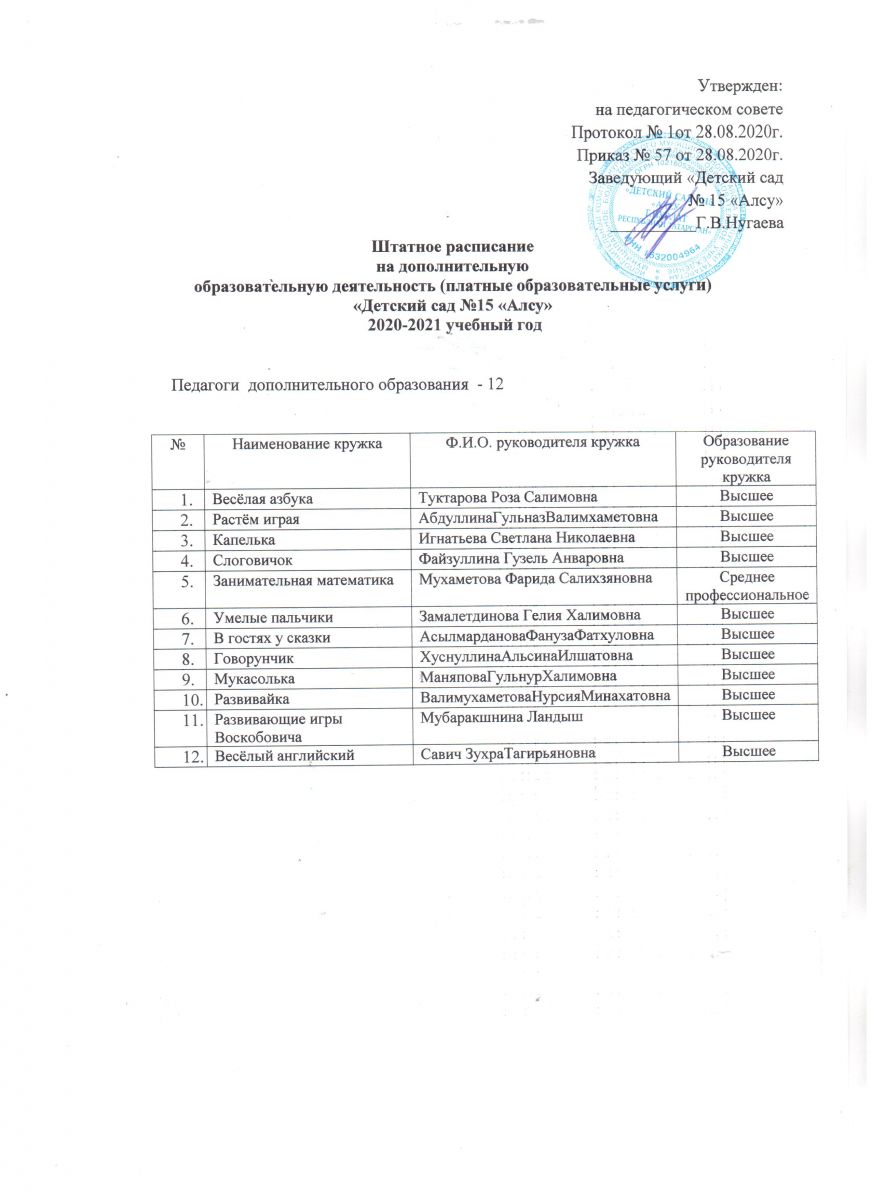 Штатное расписание на платные образовательные услуги