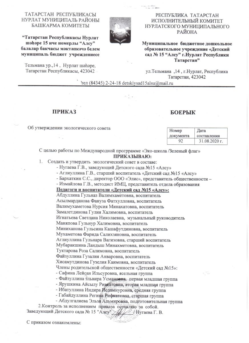 Муниципальное бюджетное дошкольное образовательное учреждение "Детский сад №15 "Алсу" г. Нурлат Республики Татарстан"/"Татарстан Республикасы Нурлат шәһәре 15 нче номерлы "Алсу" балалар бакчасы" муниципаль бюджет мәктәпкәчә белем учреждениесе"