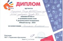 Бүген "Родничок" балалар бакчасы базасында "Яшь мастер - 2024" V региональ чемпионатының муниципаль этабы узды, анда безнең тәрбияләнүчебез Сафиуллина Диләрә "Мәктәпкәчә тәрбия" компетенциясен тәкъдим итте һәм икенче урынны алды.