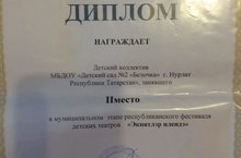 Безнең балалар бакчасы "Әкиятләр илендә" Республика балалар театрлары фестиваленең муниципаль этабында 2 нче урынны яулады.